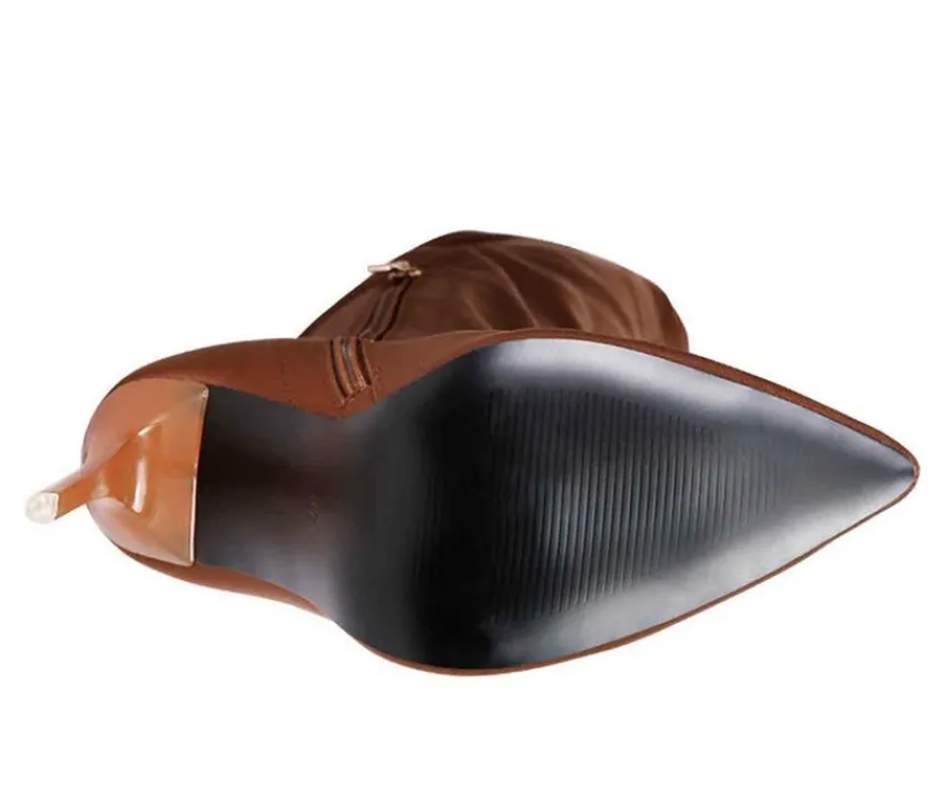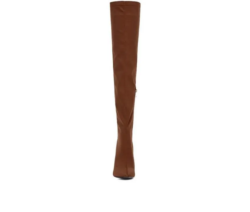 Brown Superstretch Stiletto Long Boot with a side zipper opening that makes it extremely comfortable to wear. Stretchable Over the Knee and high heeled long boot give a classic look that you can pair with shorts dress and you are ready with your eye catching look as well as its Elasticated Gusset which gives you perfect fit.