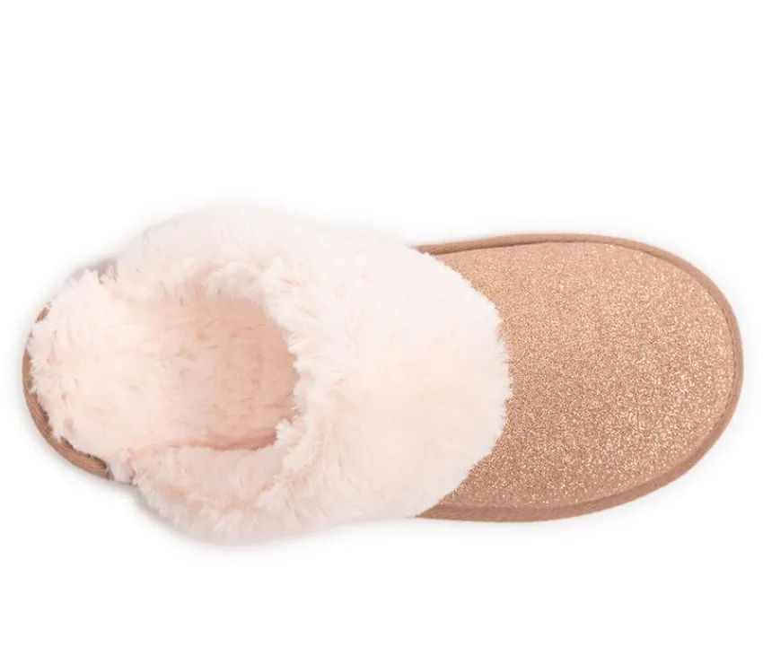 Get ready to sparkle and shine with our MUK LUKS® Angled Sparkle Scuff! Slip into pure comfort with its warm, cozy faux fur lining, while the beautiful glistening sparkly design adds a touch of glam to your loungewear game. Guaranteed to give your day that extra sparkle, these slippers are a must-have for anyone who loves a little fun in their footwear! So why wait? Treat your feet to some sparkle today!