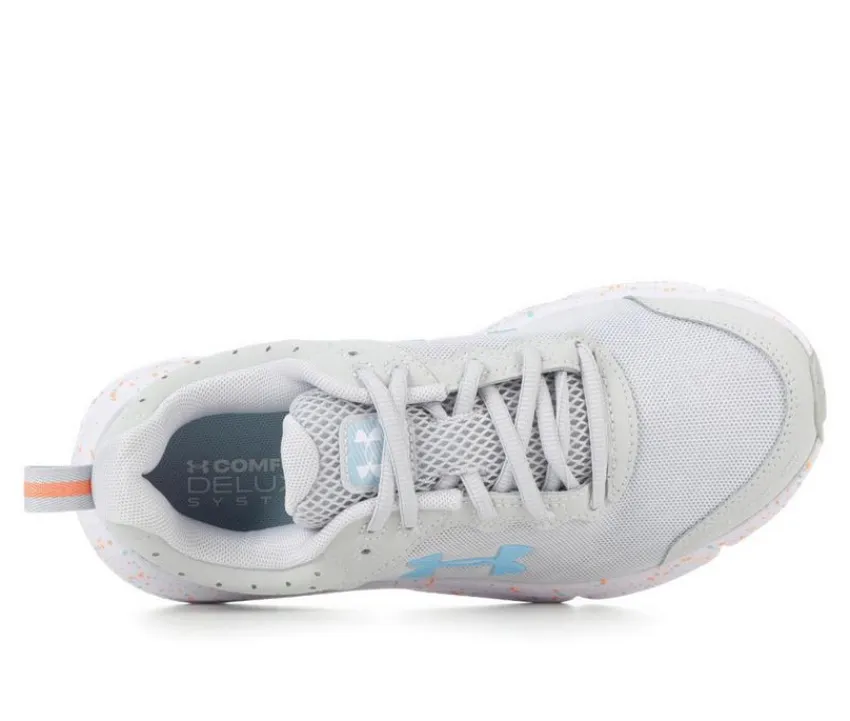 Make a bold statement on your runs with the Women’s Under Armour Charged Assert 10 Paint Splatter Running Shoes. These vibrant sneakers feature a unique paint splatter design that adds a touch of artistic flair, while the Charged Cushioning® midsole provides responsive support and energy return with every step.